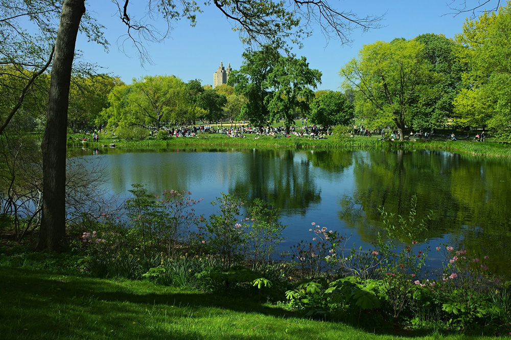 We hebben wel al weer een mooie tuin gevonden om ons partytentje neer te zetten. Niet zo'n klein tuintje voor niet zo'n klein tentje. Maar het kan nog groter. Dit is de achtertuin voor zo'n 10 miljoen New Yorkers: Central Park. Maarliefst 4 bij 1 kilometer! Golfen, zwemmen, fietsen, theaters, ontspannen, roeien. Prachtig.