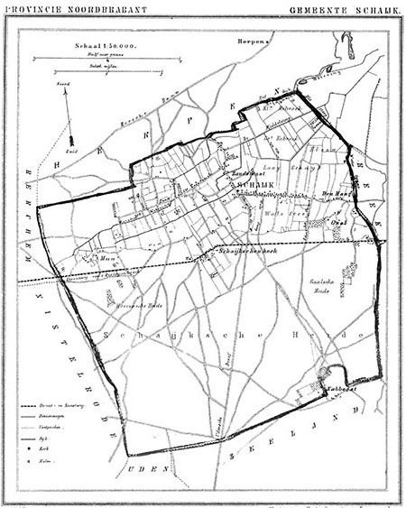 Wat moet het indrukwekkend geweest zijn om zo aan te komen... Ter vergelijking, dit is Schaijk rond diezelfde periode met wat boerderijen en huizen in de hoofdstraten en wat 'nederzettingen' op het Gaal en het Mun...