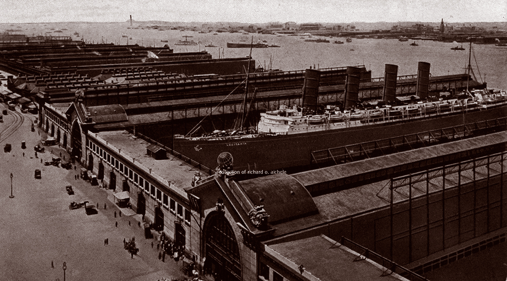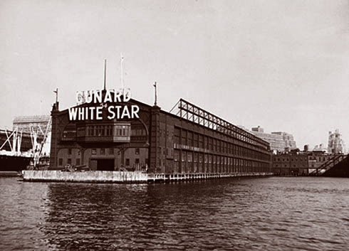 Hiernaast de plek waar de Titanic aan had moeten leggen. Pier 54 in new York. Hieronder de haven te zien met een andere boot geparkeerd.