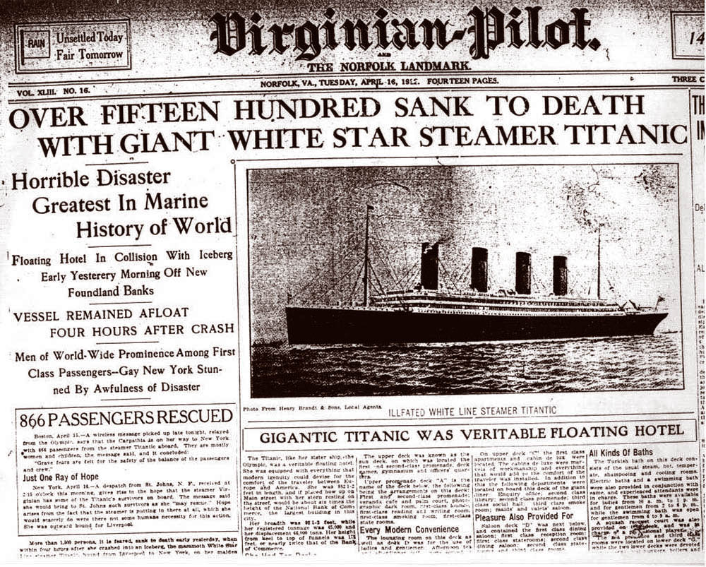21.00 Carpathia arrives in New York with the survivors of RMS Titanic
