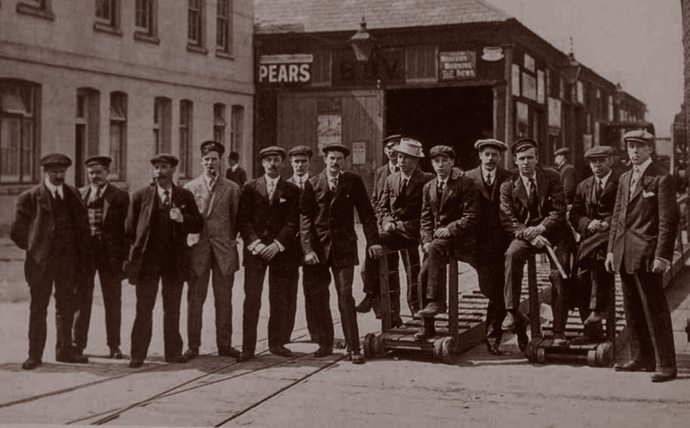 Hierboven een deel van de bemanning die de ramp heeft overleefd.